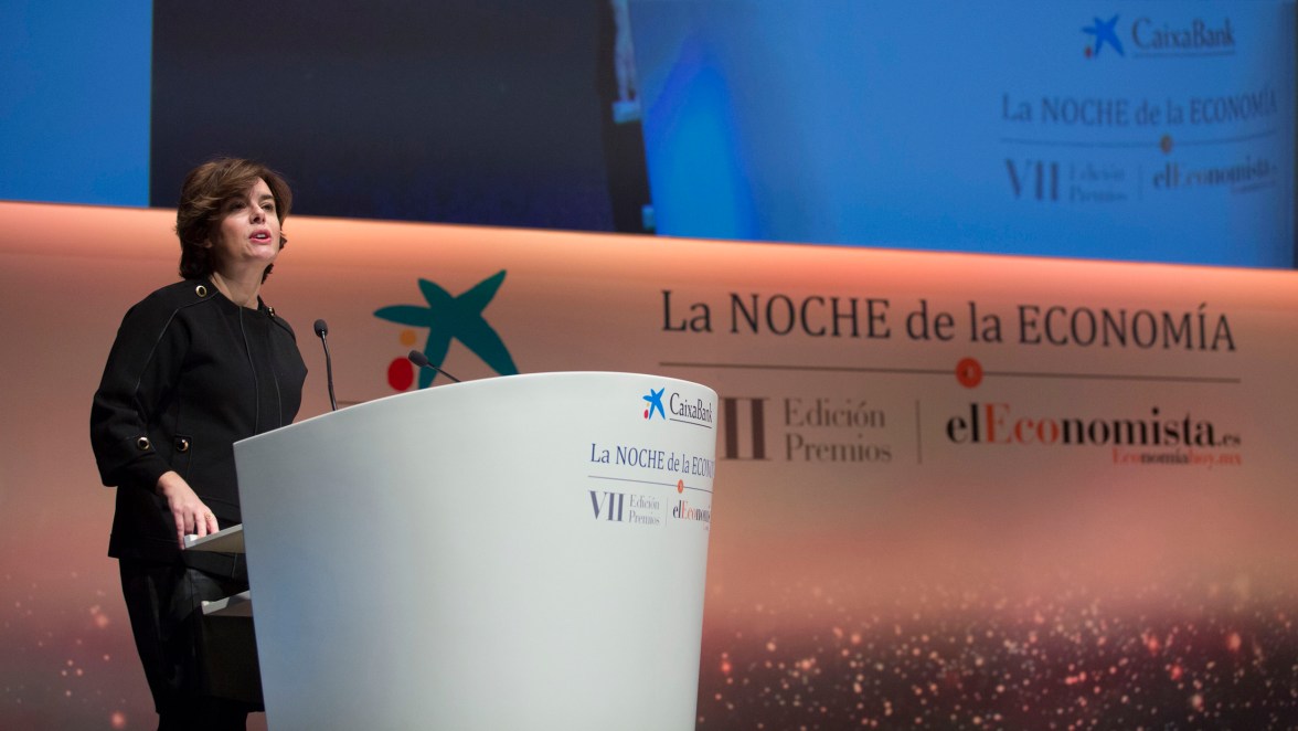 La Noche de la Economía Publicado 20 noviembre, 2017 en 2500 × 1408 en La Noche de la Economía 2017 ← Anterior Siguiente → La vicepresidenta del Gobierno, Soraya Sáenz de Santamaría.